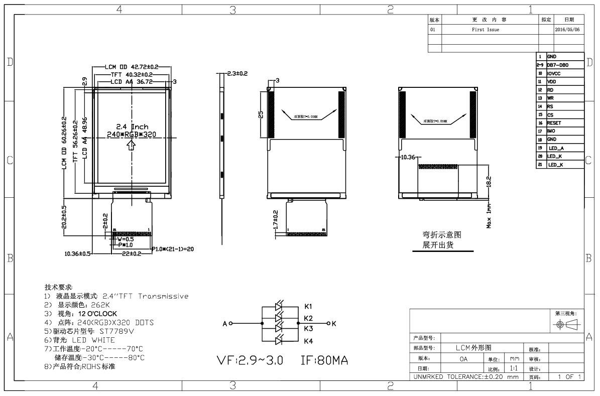 Параметр Q2424TC77118A7 (TFT-ЖК-дисплей с ИС драйвера ST7789V)