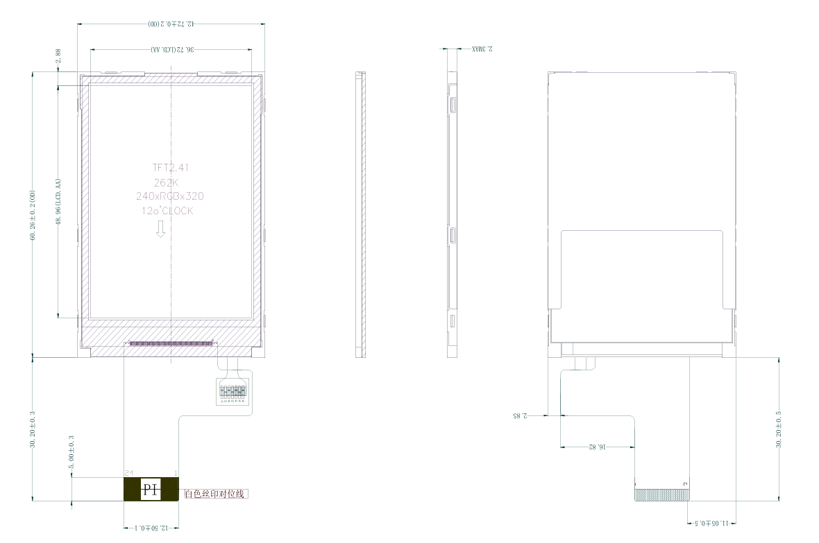 2,4-дюймовый небольшой TFT-дисплейный модуль TFT с диагональю обычно белого цвета использует режим отображения «белый режим», обеспечивая высокое разрешение 240×RGB×320 пикселей и поддерживает 8/16-битный параллельный интерфейс (тайминг 8080) MCU, совместимый с различными микроконтроллерами.